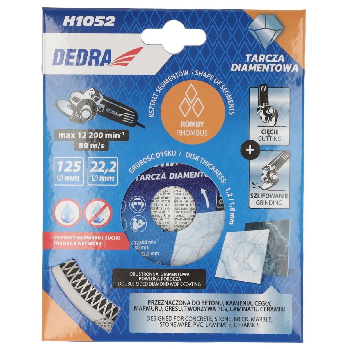 DEDRA TEEMANTLÕIKEKETAS, rombikujulise segmentiga, märg- ja kuivlõikus, 125 mm